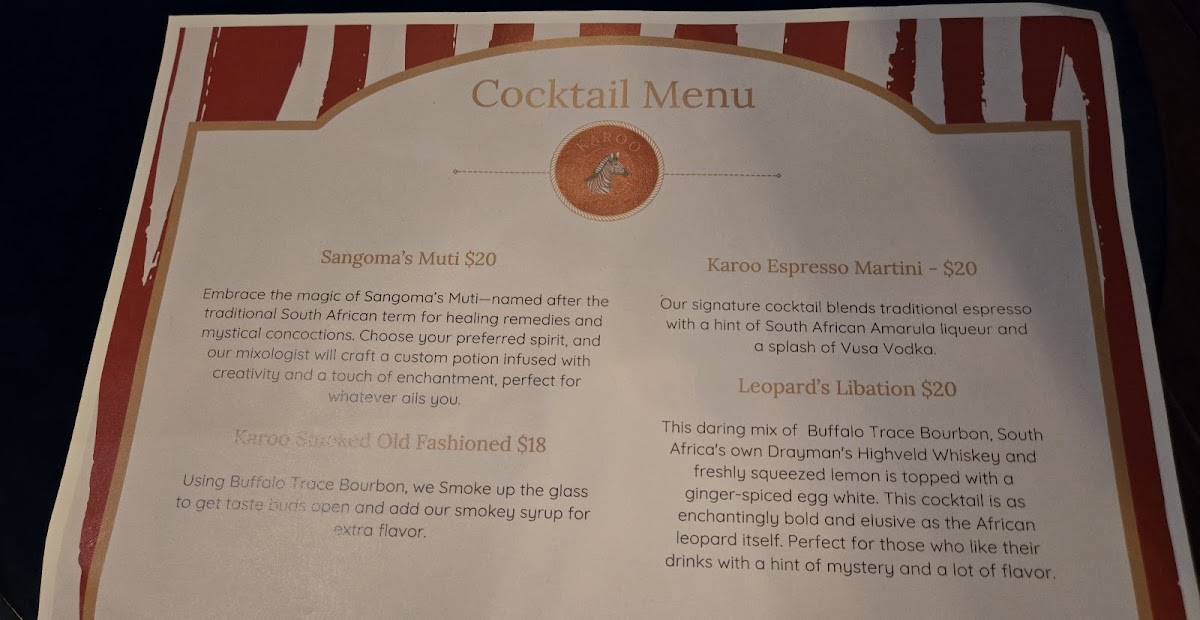 Welcome to Karoo Cafe, a culinary gem nestled in Seattle, WA. Known for its vibrant atmosphere and eclectic decor, it’s more than just a cafe; it’s a cozy retreat that captures the dynamic spirit of the city. The menu offers a delightful fusion of flavors, featuring highlights like tender Peri Peri Chicken Skewers, grilled to perfection and coated in a house-made sauce, alongside Trio of Boerewors Sliders, which showcase South African sausage with sweet and tangy toppings. Vegetarian options, such as the flaky Samosas, are also available, filled with spiced vegetables and infused with Indian-South African flavors.